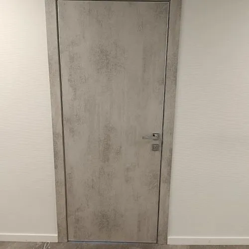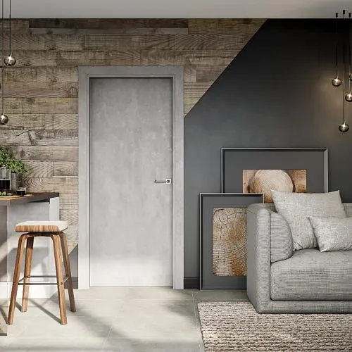 Стильная и современная межкомнатная дверь DG-500 (ДГ-500) Бетон светлый предназначена для установки в жилых и общественных помещениях, таких как квартира, частный дом или офис.