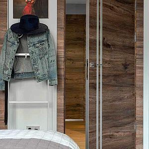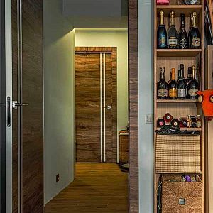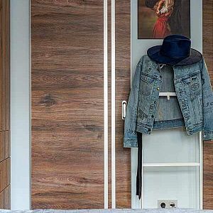 Дверь обратного открывания скрытого монтажа (толщиной 40 мм) поставляется с магнитным замком, алюминиевой кромкой по вертикальным торцам полотна, с 2-мя скрытыми петлями KUBICA для обратного открывания и специальным алюминиевым коробом.