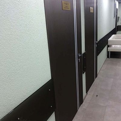 Дверь поставляется с алюминиевой кромкой по вертикальным торцам полотна и предустановленным магнитным замком под WC. Возможна установка для открытия на правую и левую стороны.
