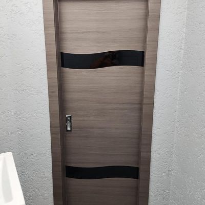 Дверь поставляется с алюминиевой кромкой по вертикальным торцам полотна и предустановленным магнитным замком под WC. Возможна установка для открытия на правую и левую стороны.