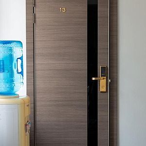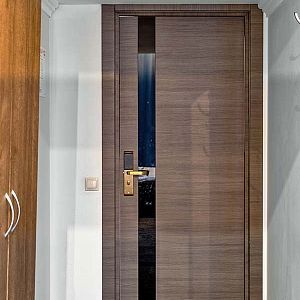 Дверь поставляется с алюминиевой кромкой по вертикальным торцам полотна и предустановленным магнитным замком под WC. Возможна установка для открытия на правую и левую стороны.