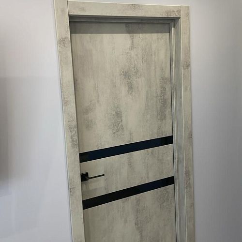 Стильная и современная межкомнатная дверь DO-513 (ДО-513) Бетон светлый с черным стеклом предназначена для установки в жилых и общественных помещениях, таких как квартира, частный дом или офис.