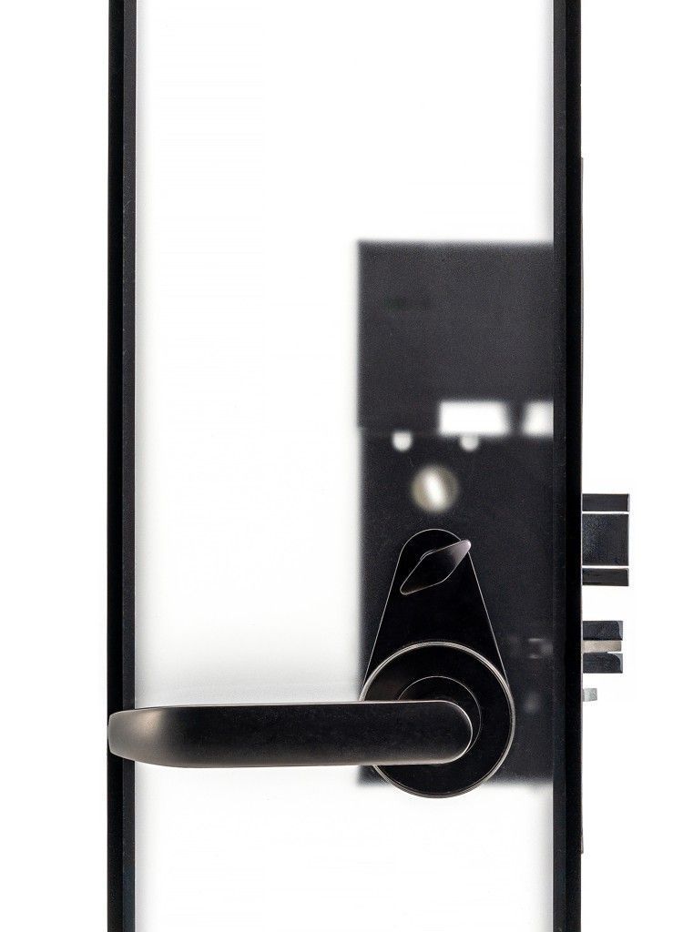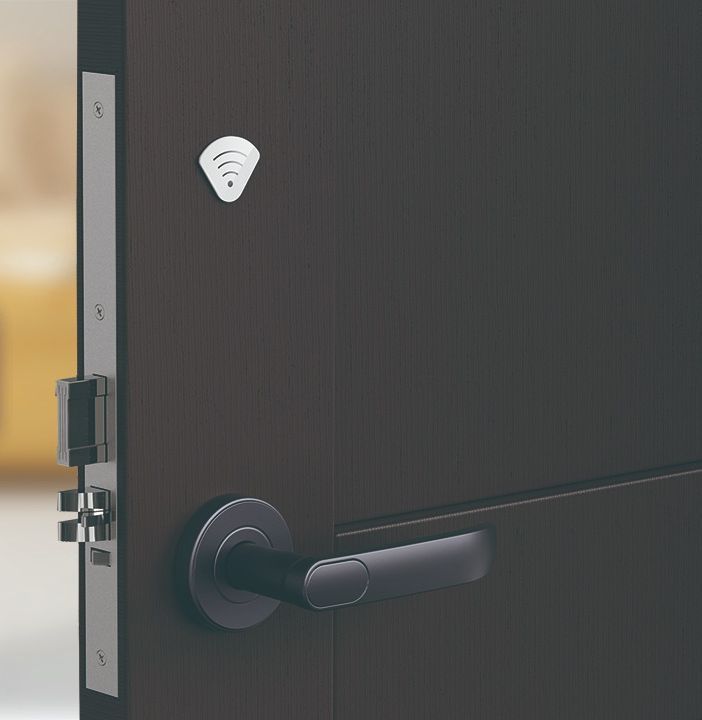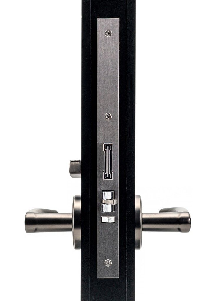 - Дополнительные функции: Электронные компоненты, батареи, антенна установлены в корпусе врезного механизма. Простое изменения режима замка с гостиничного на офисный делает удобным применение замка в служебных помещениях.