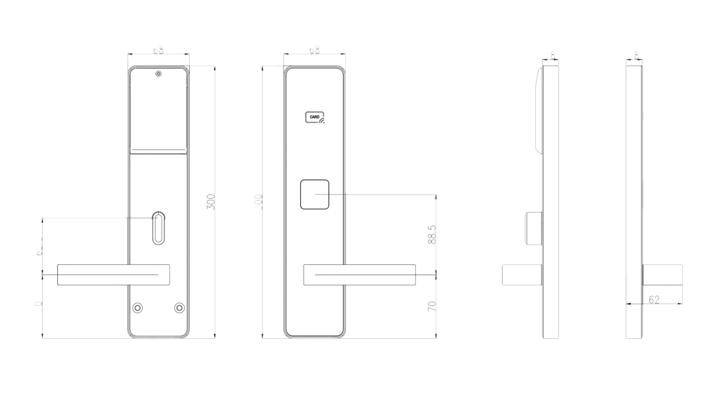 В модели электронного замка для гостиниц серии HSU-9953 применяются алюминиевые накладки дверных ручек, обработанные на стенке с ЧПУ, что обеспечивает точность размеров каждого гостиничного замка, а изготовление декоративных элементов и их нанесение на поверхность накладок дверных ручек методом литья гарантируют чистоту стыков и сохранение первозданного вида электронного дверного замка на протяжении всего срока службы. Использование алюминиевого профиля вкупе со стальной основой позволяет дверным замкам выдерживать значительно более суровые условия эксплуатации по сравнению с классическими гостиничными замками, изготовленными из нержавеющей стали.