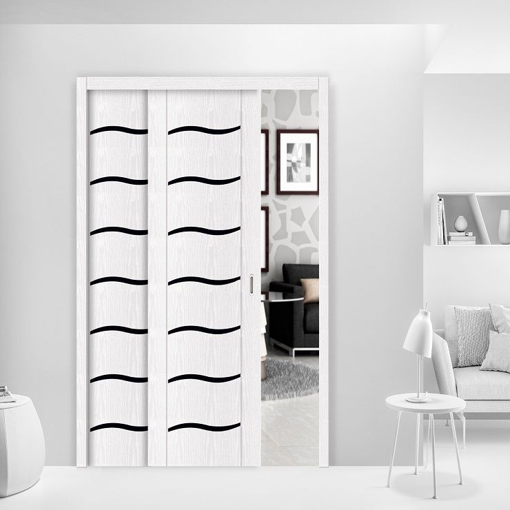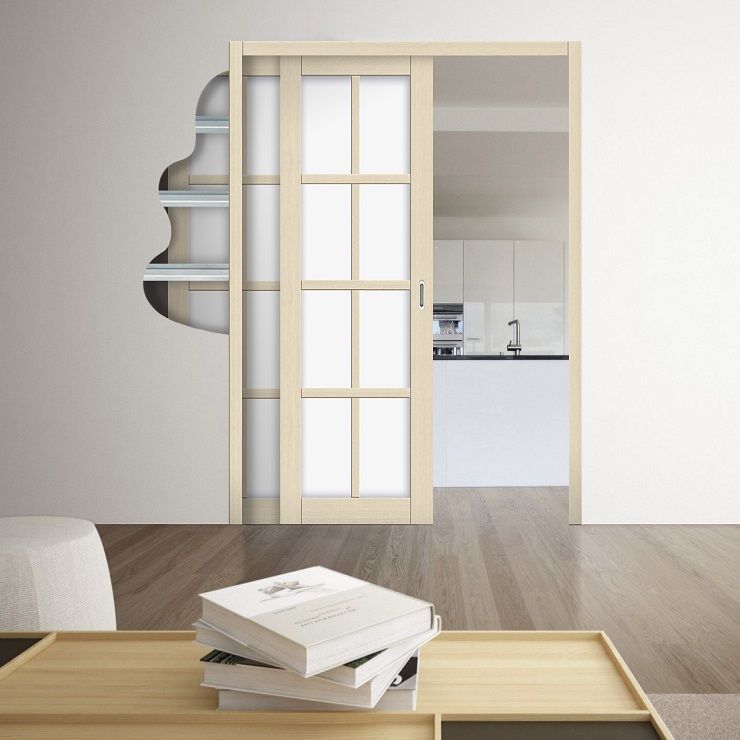 Пенал TELESCOPE Lux - используется для установки двух дверей, сдвигающихся влево или вправо, при движении первой двери, вторая двигается автоматически. Под обрамления проёма деревянными доборами и наличниками.