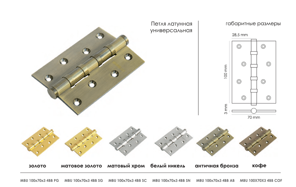 Петля латунная универсальная MBU 100X70X3-4BB SG