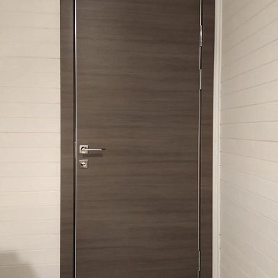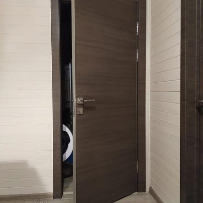 Дверь поставляется с алюминиевой кромкой с трех сторон (по вертикальным торцам полотна и сверху) и предустановленным магнитным замком под WC в базовой комплектации. Можно заказать комплектацию замка под ключ или под отельный замок. Возможна установка для открытия на правую и левую стороны.