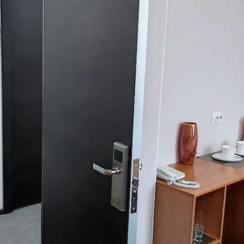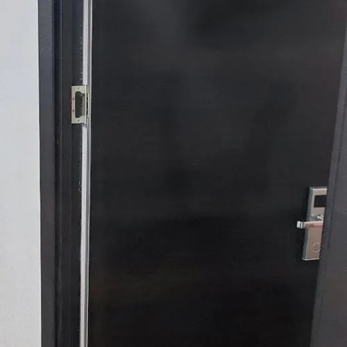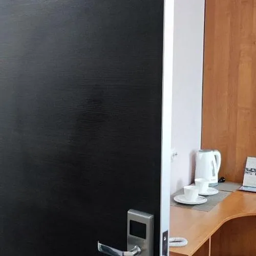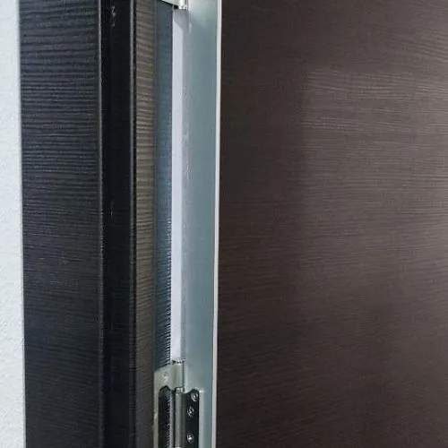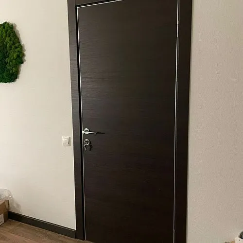 Дверь поставляется с алюминиевой кромкой с трех сторон (по вертикальным торцам полотна и сверху) и предустановленным магнитным замком под WC в базовой комплектации. Можно заказать комплектацию замка под ключ или под отельный замок. Возможна установка для открытия на правую и левую стороны.
