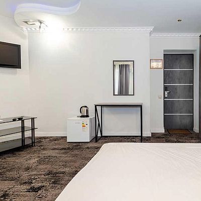 Дверь поставляется с алюминиевой кромкой с трех сторон (по вертикальным торцам полотна и сверху) и предустановленным магнитным замком под WC в базовой комплектации. Можно заказать комплектацию замка под ключ или под отельный замок. Возможна установка для открытия на правую и левую стороны.