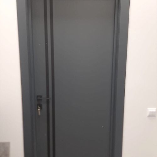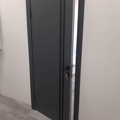 Дверь поставляется с алюминиевой кромкой с трех сторон (по вертикальным торцам полотна и сверху) и предустановленным магнитным замком под WC в базовой комплектации. Можно заказать комплектацию замка под ключ или под отельный замок. Возможна установка для открытия на правую и левую стороны.