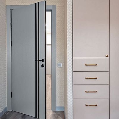 Стильная и современная межкомнатная шумоизоляционная дверь DG-606 (ДГ-606) Металлик с декоративными молдингами серебряного цвета предназначена для установки в отелях, гостиницах, офисах и других помещениях, где необходимо обеспечить хорошую звукоизоляцию. Подходит для установки в квартирах и частных домах.