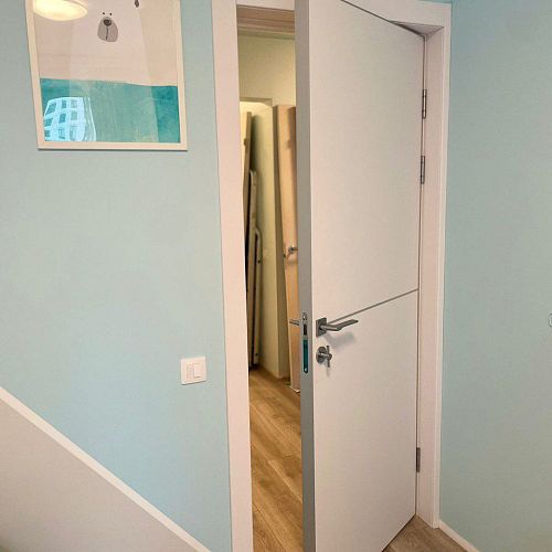 Дверь поставляется с алюминиевой кромкой с трех сторон (по вертикальным торцам полотна и сверху) и предустановленным магнитным замком под WC в базовой комплектации. Можно заказать комплектацию замка под ключ или под отельный замок. Возможна установка для открытия на правую и левую стороны.
