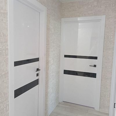 Стильная и современная межкомнатная шумоизоляционная дверь DO-612 (ДО-612) Белый глянец с черным стеклом предназначена для установки в отелях, гостиницах, офисах и других помещениях, где необходимо обеспечить хорошую звукоизоляцию. Подходит для установки в квартирах и частных домах.