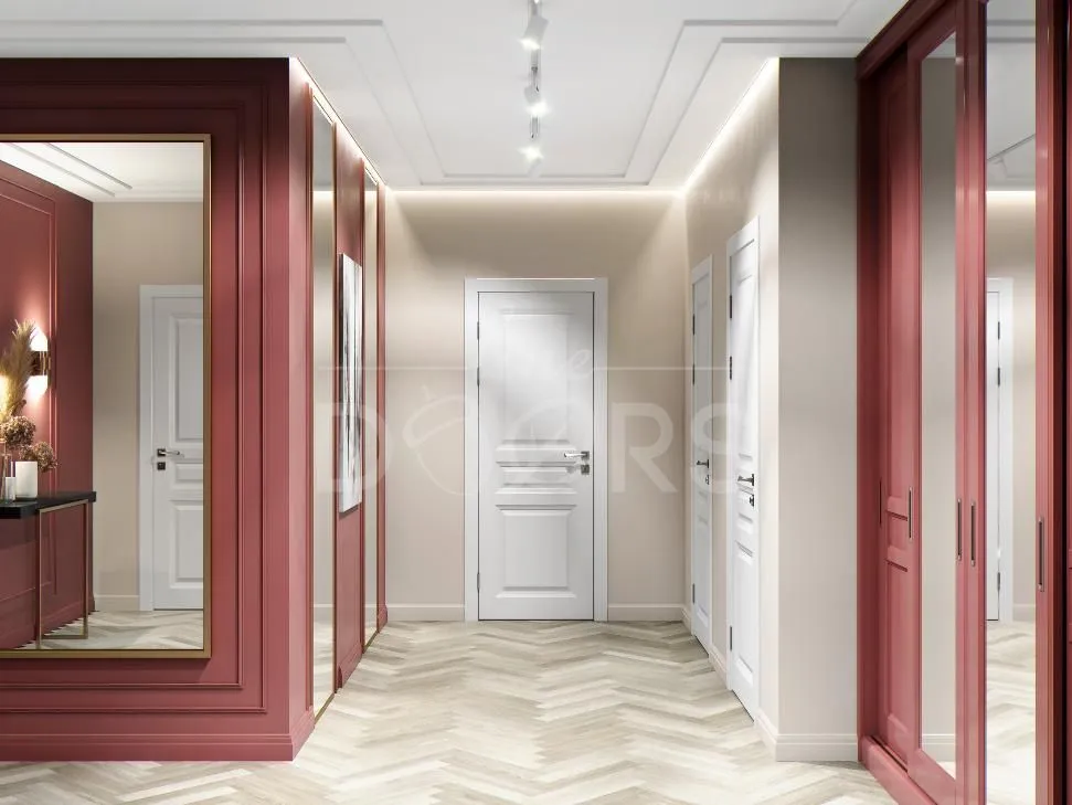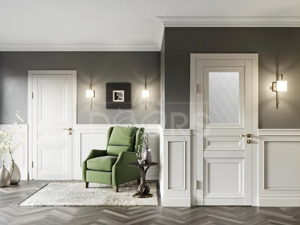 При выборе дверей для интерьера в классическом стиле важно учитывать несколько аспектов, чтобы достичь гармонии и единства в дизайне. Двери из массива дерева идеально вписываются в этот стиль. Они могут быть покрыты лаком или краской в светлых тонах, что подчеркнет их естественную текстуру. Также можно использовать двери с отделкой из МДФ, которые имитируют древесину, что позволяет снизить стоимость без потери качества. Лучше всего выбирать двери в нейтральных или пастельных оттенках, таких как белый, бежевый или светло-серый. Эти цвета создают спокойный фон и позволяют другим элементам интерьера выделяться. Двери с классическими резными элементами и стеклянными вставками станут отличным дополнением. Они могут быть как глухими, так и остекленными, в зависимости от того, хотите ли вы сохранить приватность или добавить света в помещение. Не забудьте о фурнитуре! Элегантные ручки и замки в золоте или бронзе подчеркнут стиль и добавят изысканности. Также можно использовать наличники и карнизы, которые гармонично завершат образ.